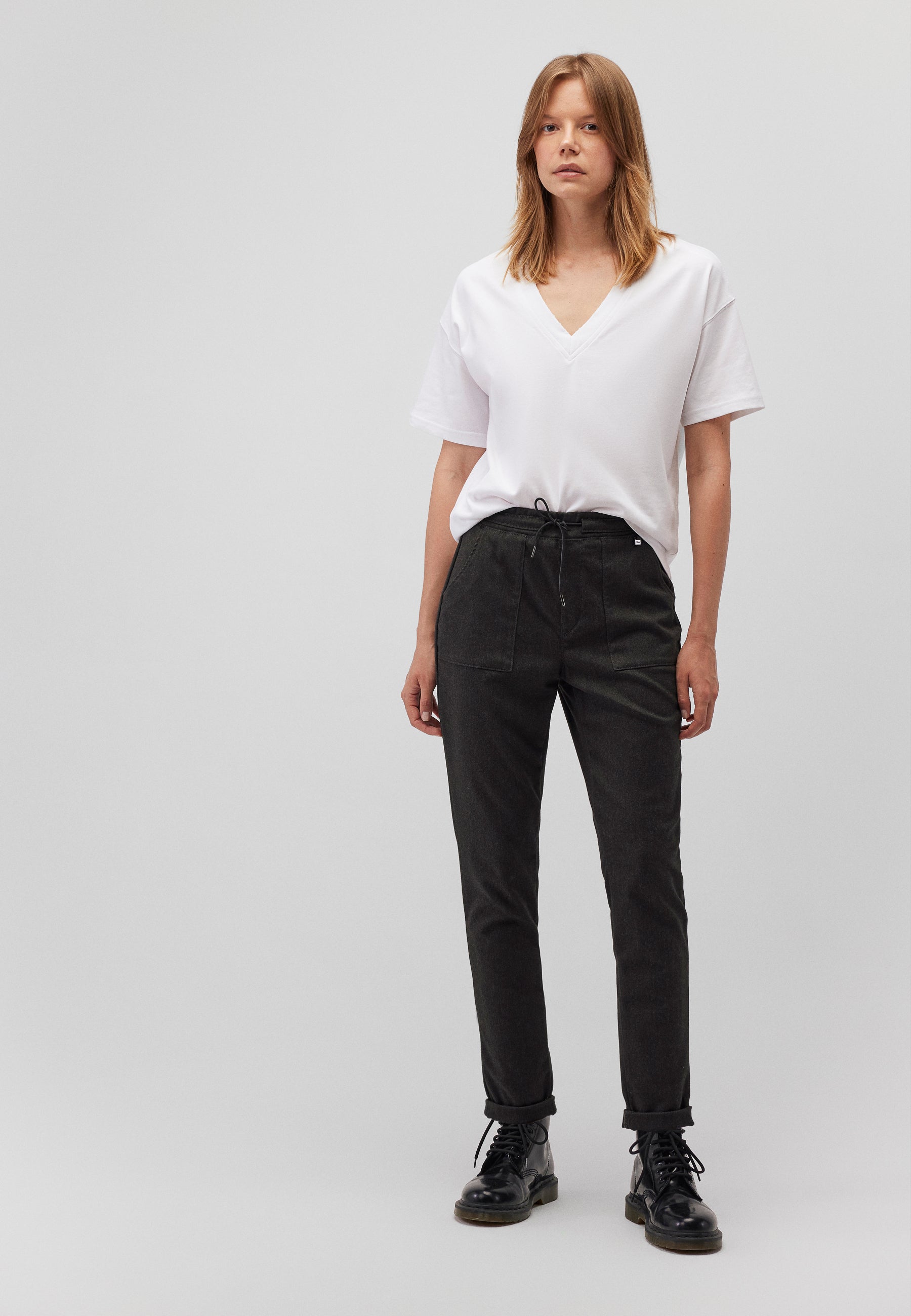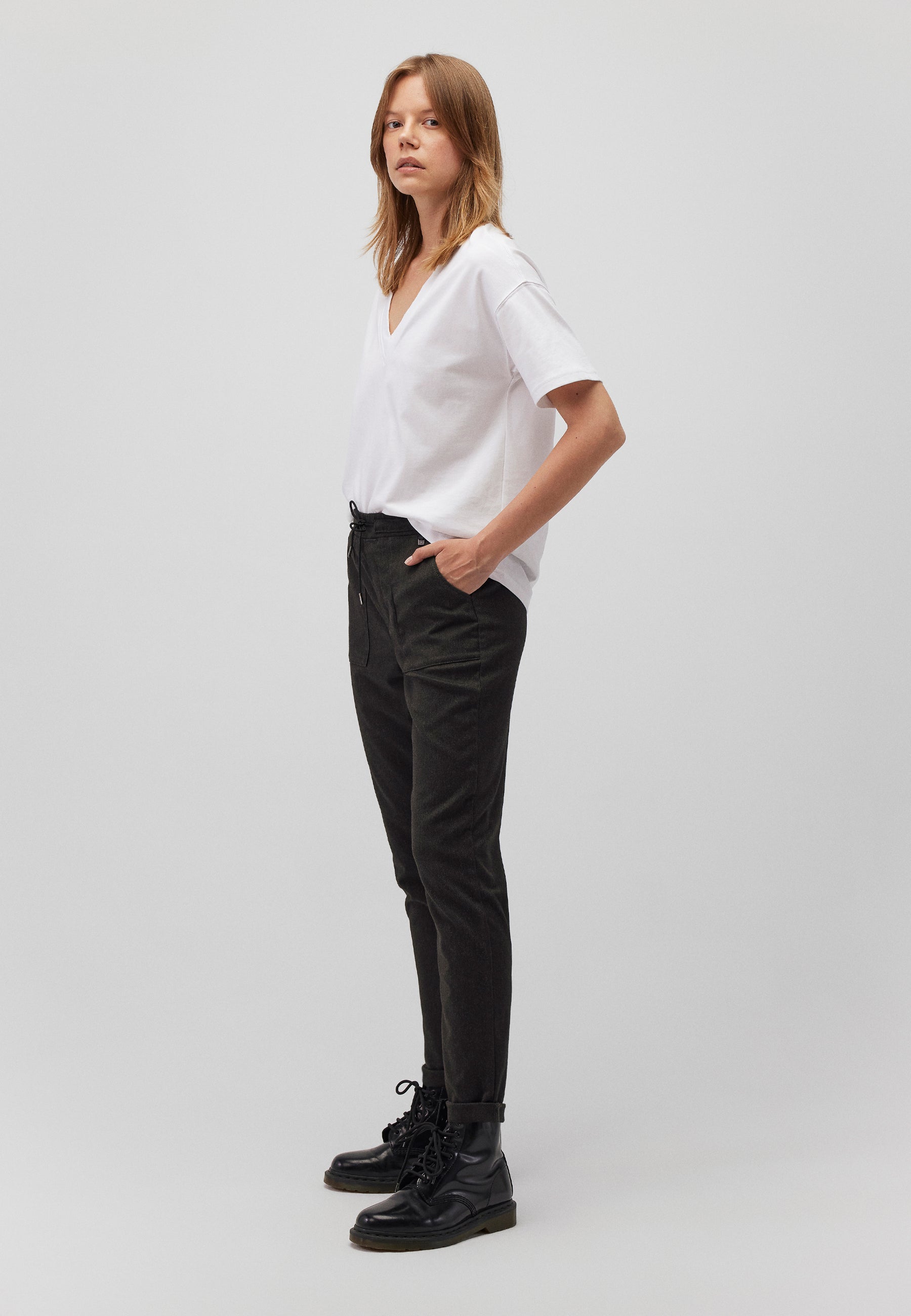- Моделът е висок 177 см и носи размера s